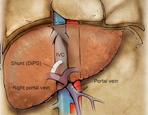 The DIPS procedure is usually performed in patients with liver cirrhosis. If you have this condition, your normal blood flow through the liver is blocked by scar tissue within the liver, which increases the pressure in your portal vein.