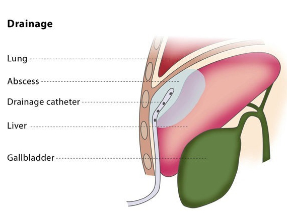Image-guided percutaneous drainage involves using a catheter (a thin tube) to drain an abscess or a collection of fluid or air under image guidance. The interventional radiologist will insert a flexible catheter through a small cut in your skin and will guide the catheter to the collection of fluid or air. The fluid or air will then be collected in a drainage bag.